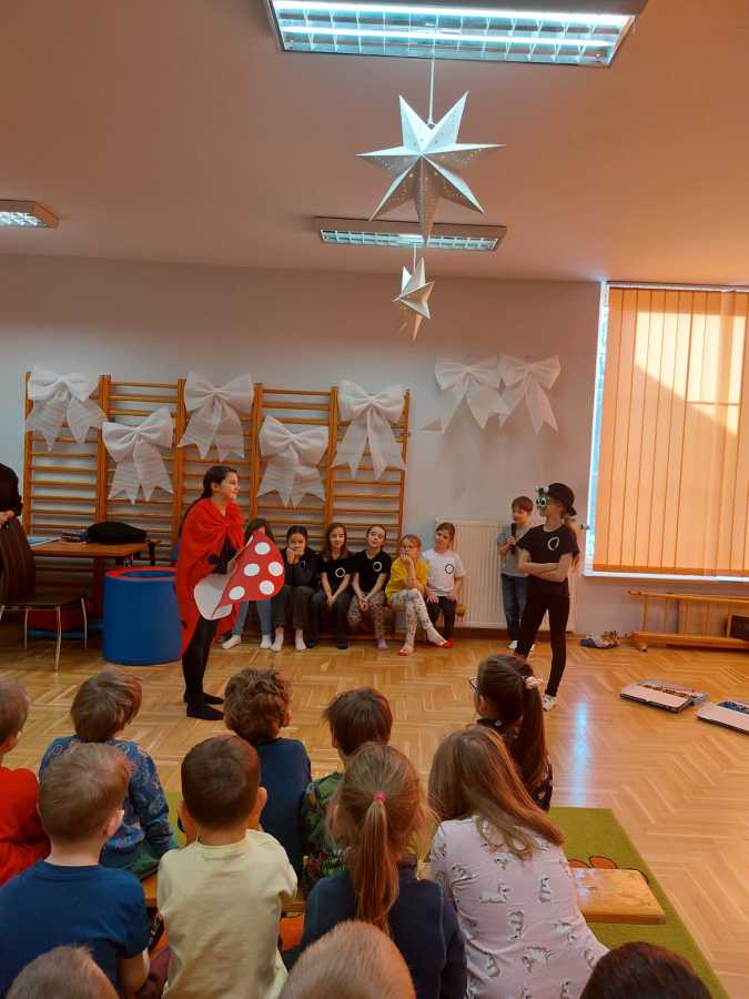 Uczniowie z klasy II i III gościli w przedszkolu nr 51. Na spotkanie uczniowie przygotowali piękne przedstawienie o biedronce i żuku, wykonali wraz z przedszkolakami biedronkę z origami, zagrali na cymbałkach, a Ewa uczennica klasy III, przeczytała 3 rozdziały napisanego przez siebie opowiadania o wycieczce! Spotkanie zakończyło się zajęciami z robotyki. Bardzo dziękujemy Pani Joli, Wioli i Piotrowi za opiekę i przygotowanie spotkania. Czekamy na kolejne spotkania z przedszkolakami